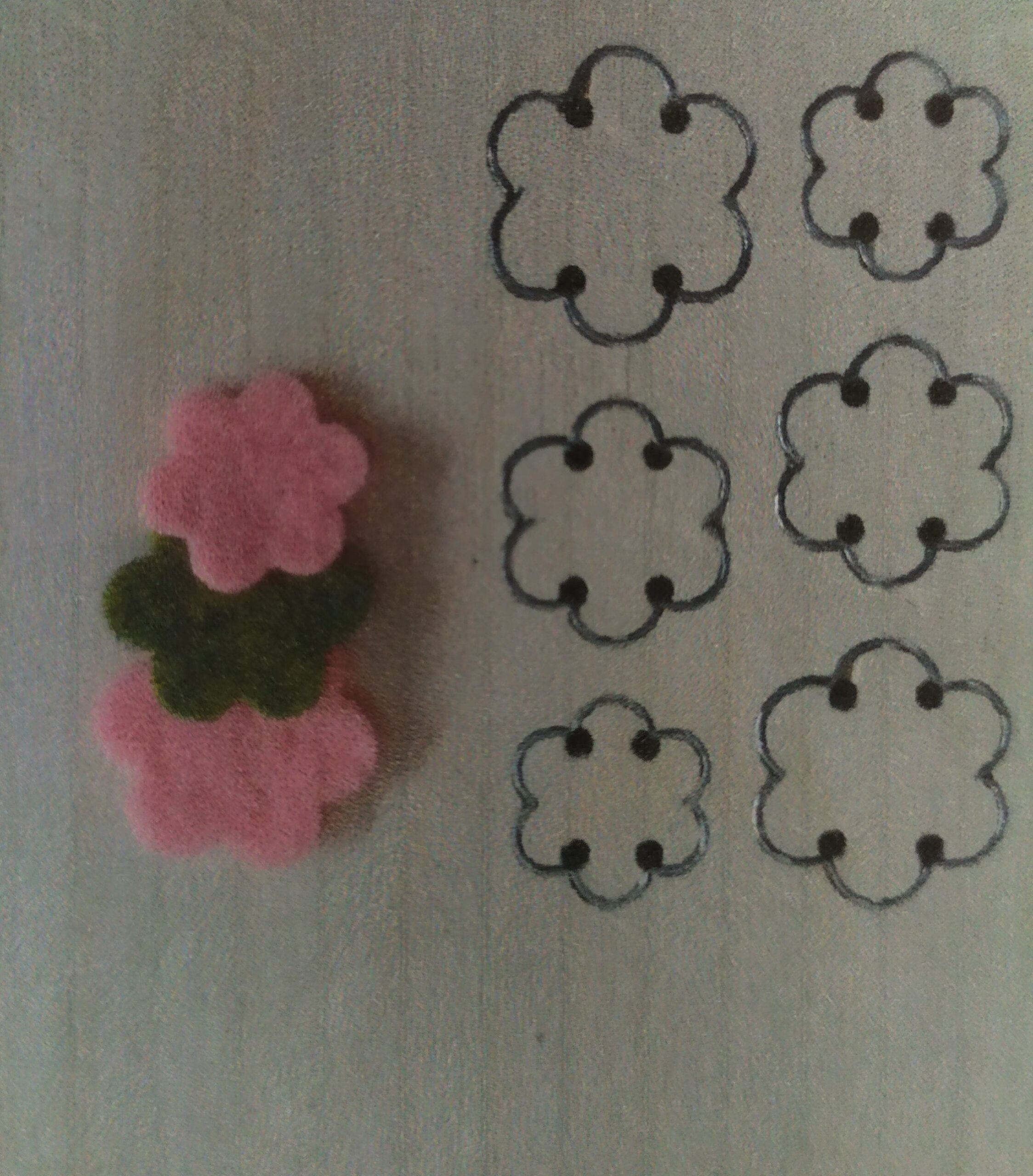 Fustella a tre fiori di diametro 2 cm, 2,3 cm e 2,6 cm.