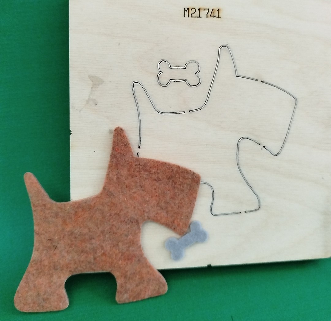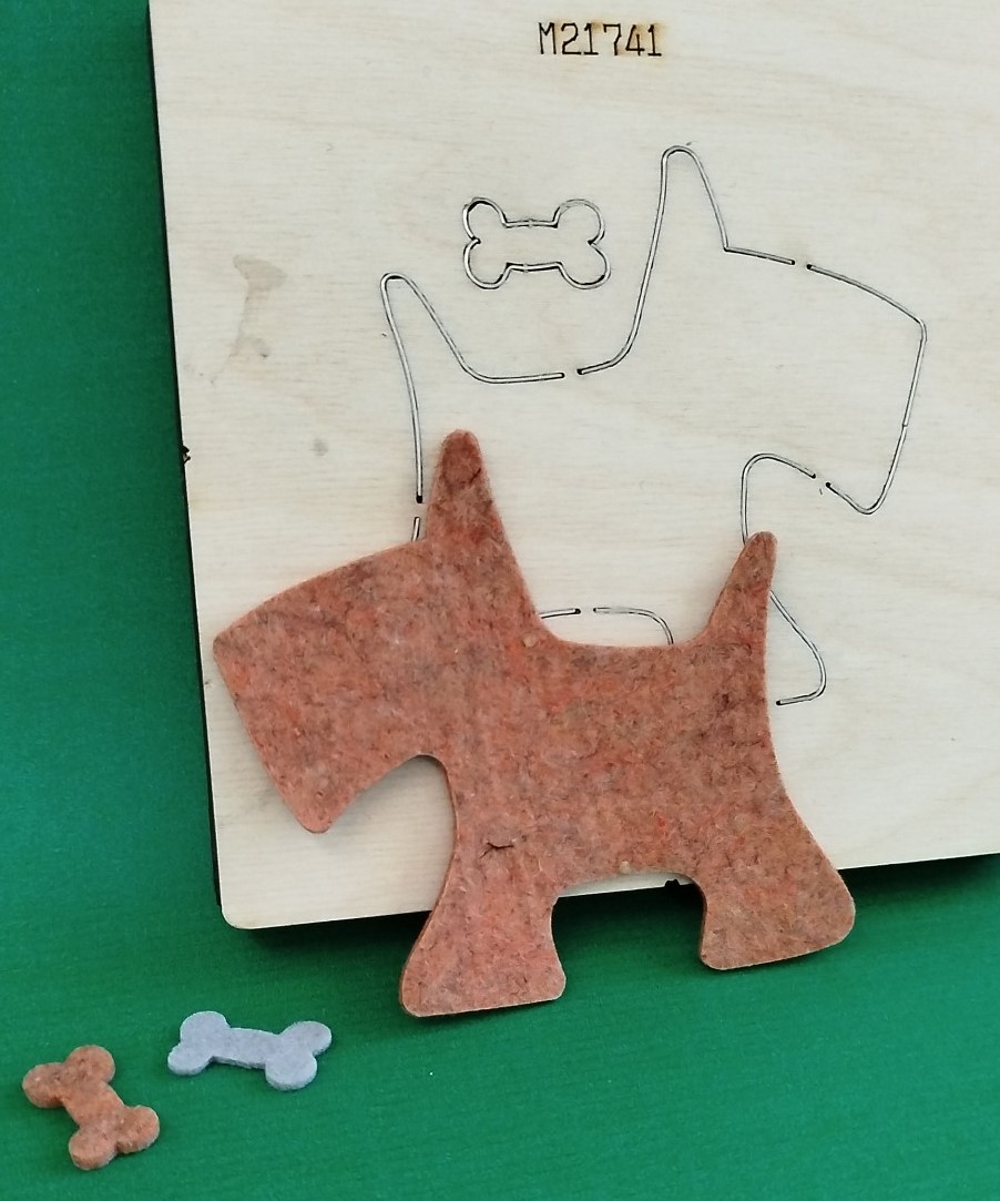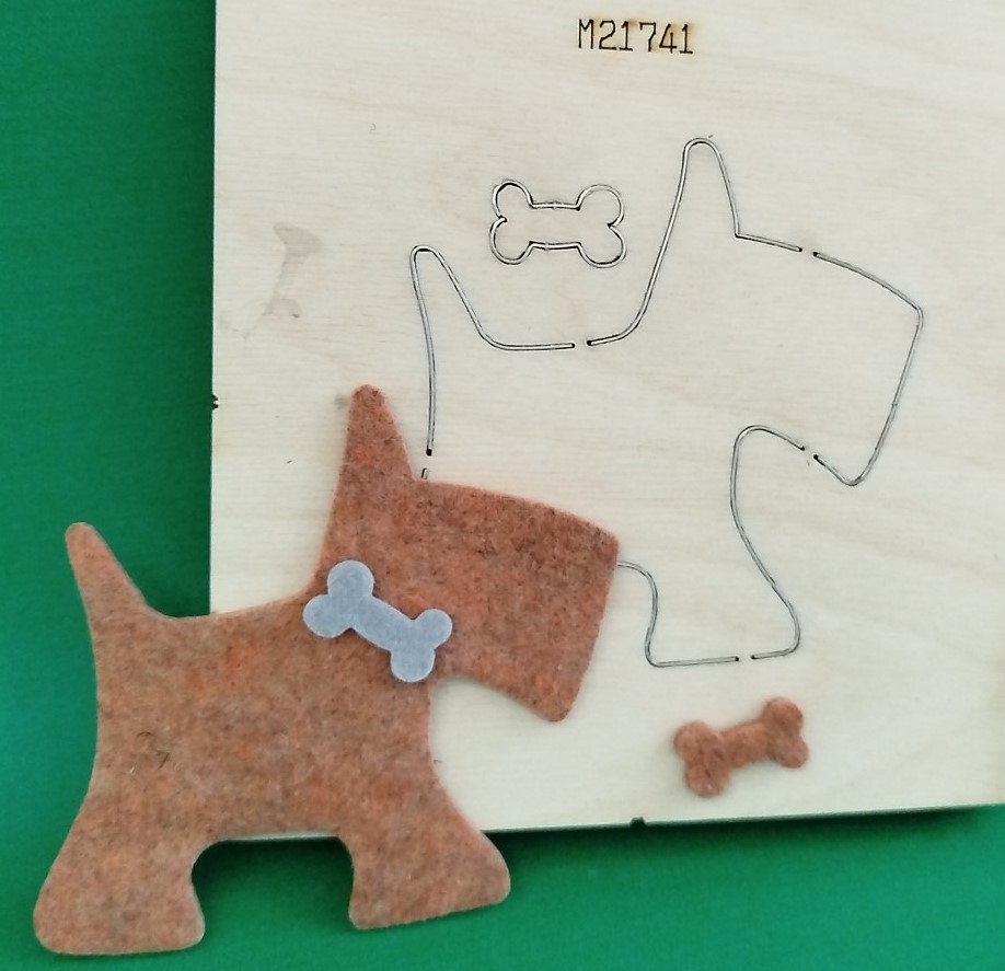 Fustella  di un cane di lunghezza 11 cm. con un piccolo osso.
