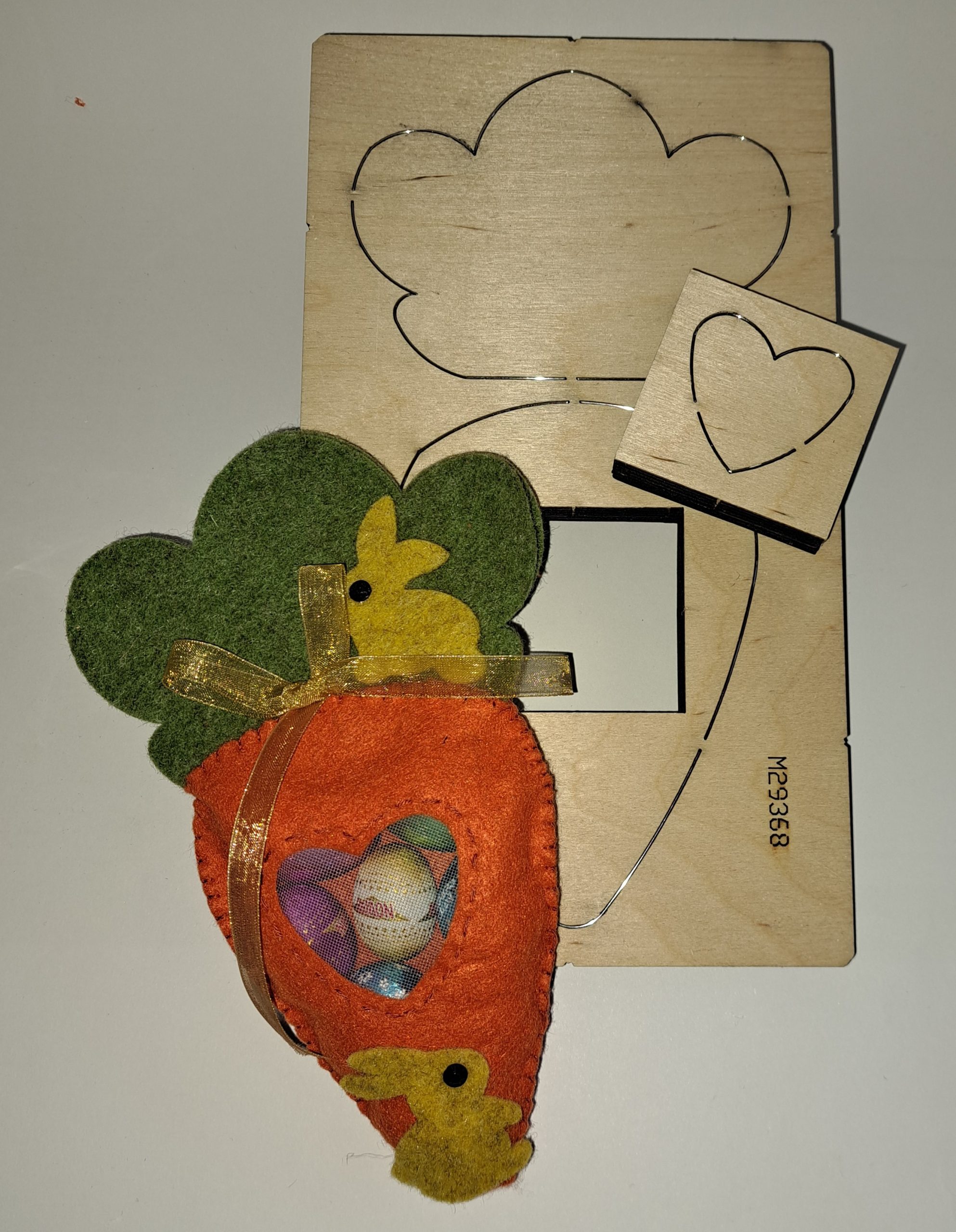Fustella con un mover a cuore per fare una carota di 14×10 cm con un ciuffo di 9×12 cm, assemblata misura circa 21×12 cm. Può contenere tanti ovetti, caramelle se fatta a forma di sacchetto oppure un simpatico quadretto da far fare ai bimbi con semplice cartoncino.