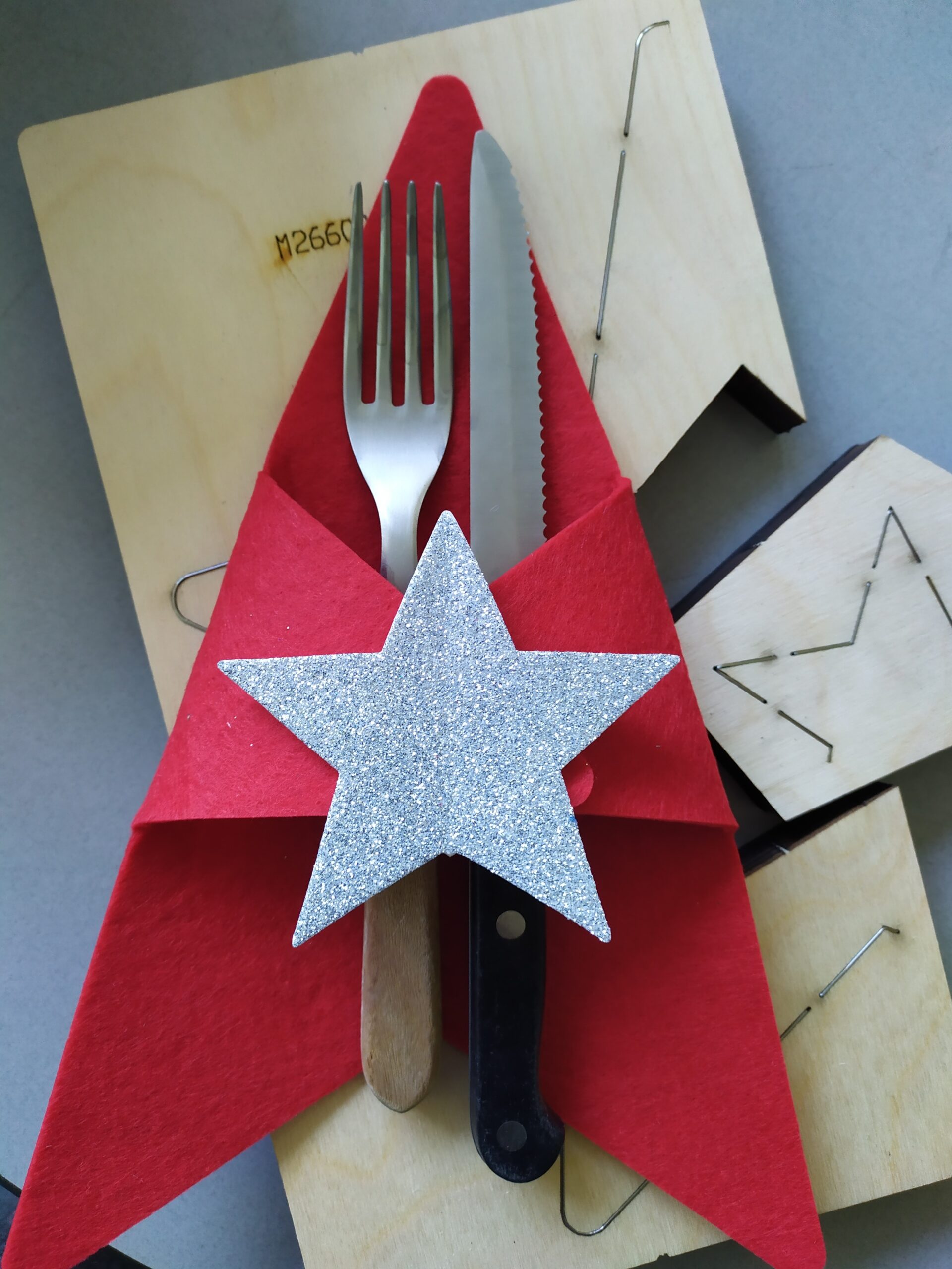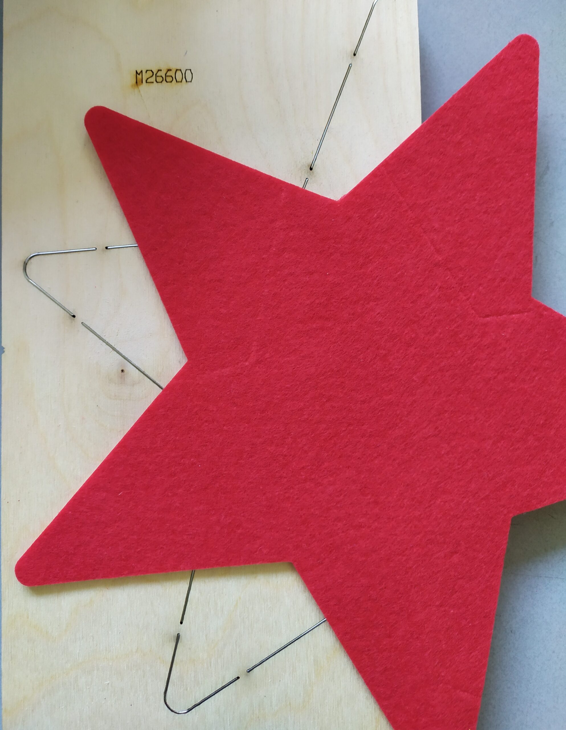 Fustella formata da due stelle con mover, la grande ha un diametro di 26 cm, mentre la piccola ha un diametro di circa 8,5 cm.