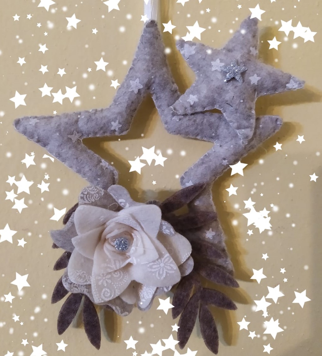 Fustella per creare una doppia stella sia piatta che imbottita. Stella esterna ha un diametro di 15 cm, mentre quella interna 8 cm.