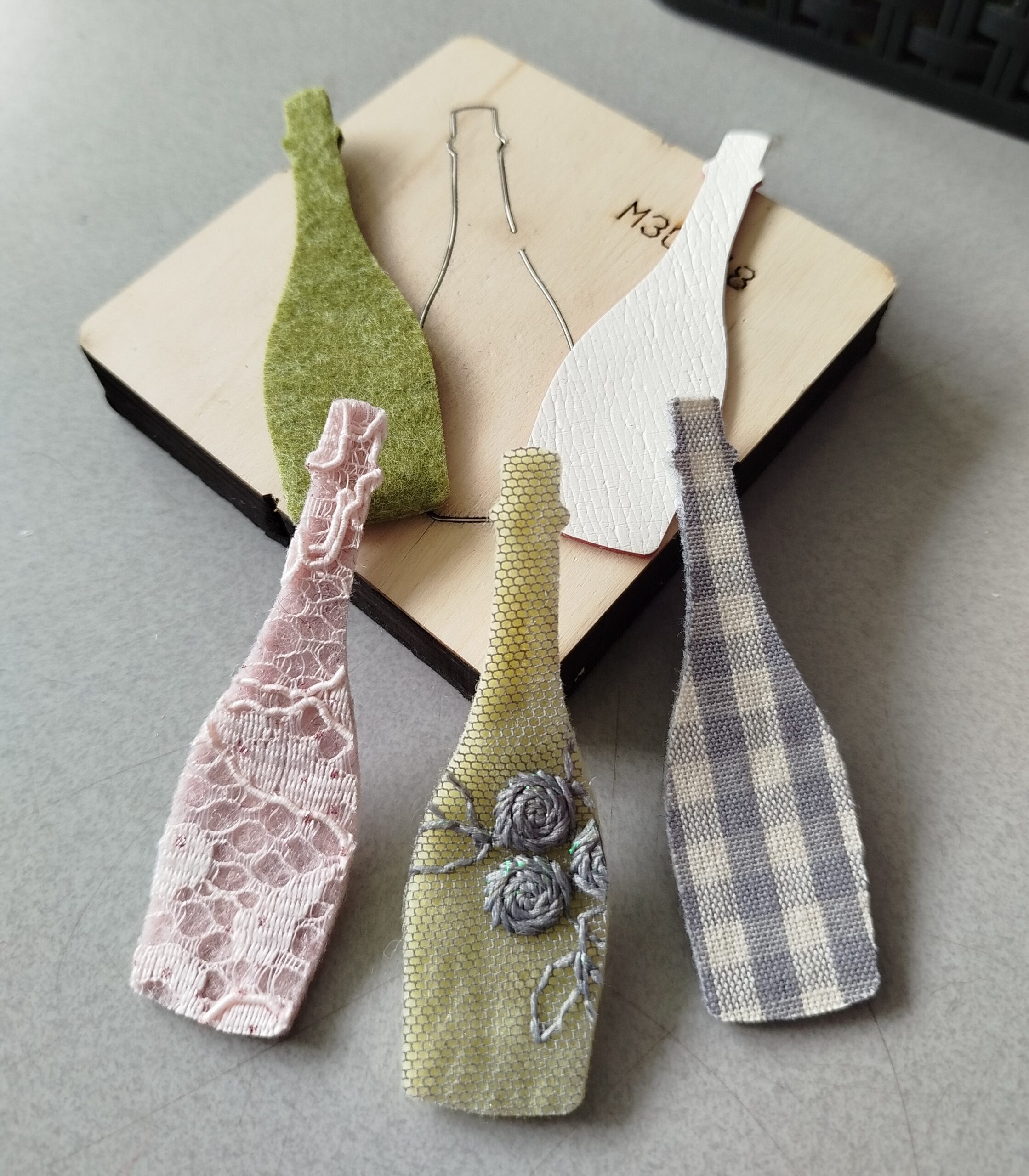 Fustella di una piccola bottiglia di 8×2,4 cm circa, simpatica come ornamento di buste o come segnaposto.