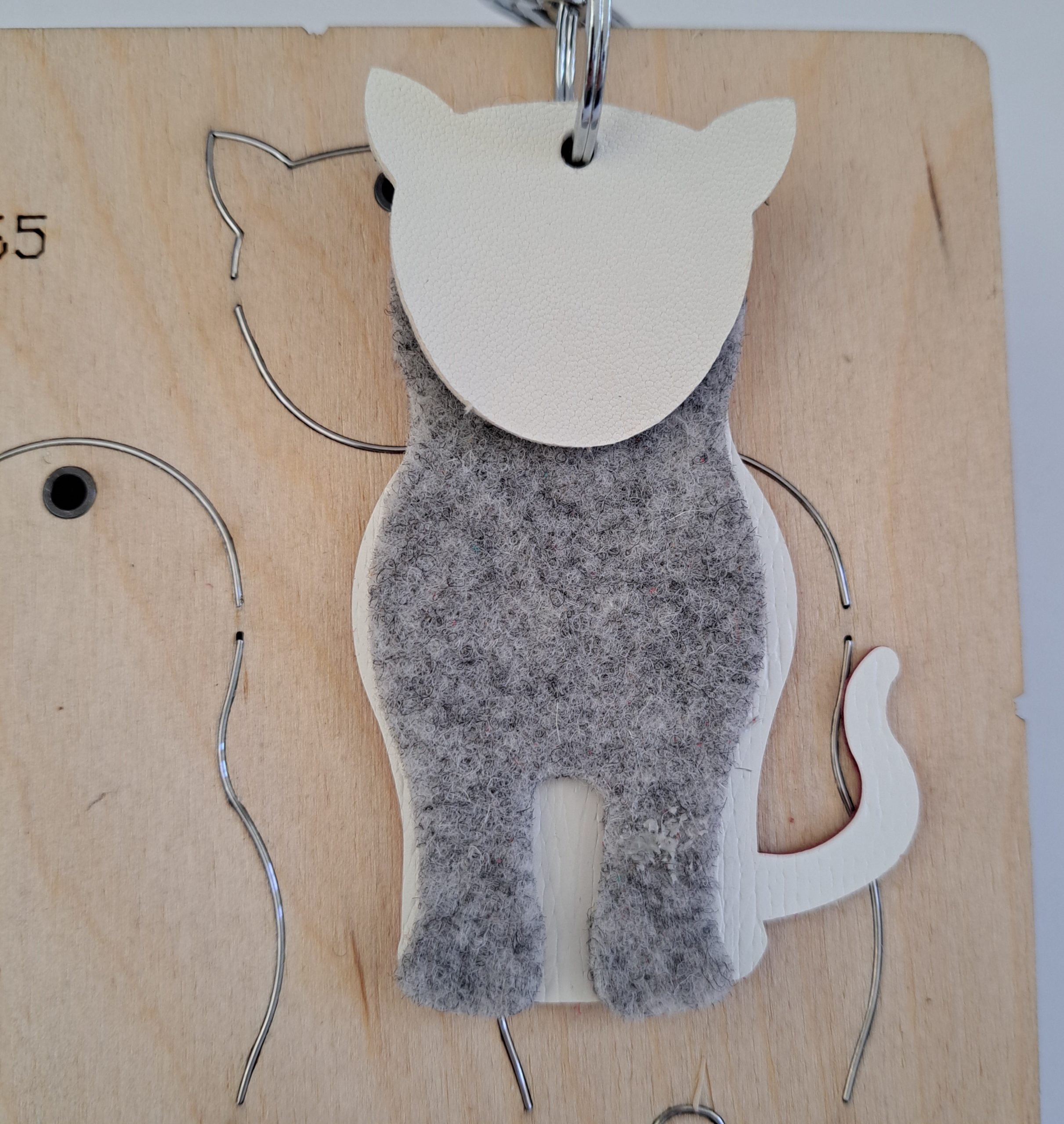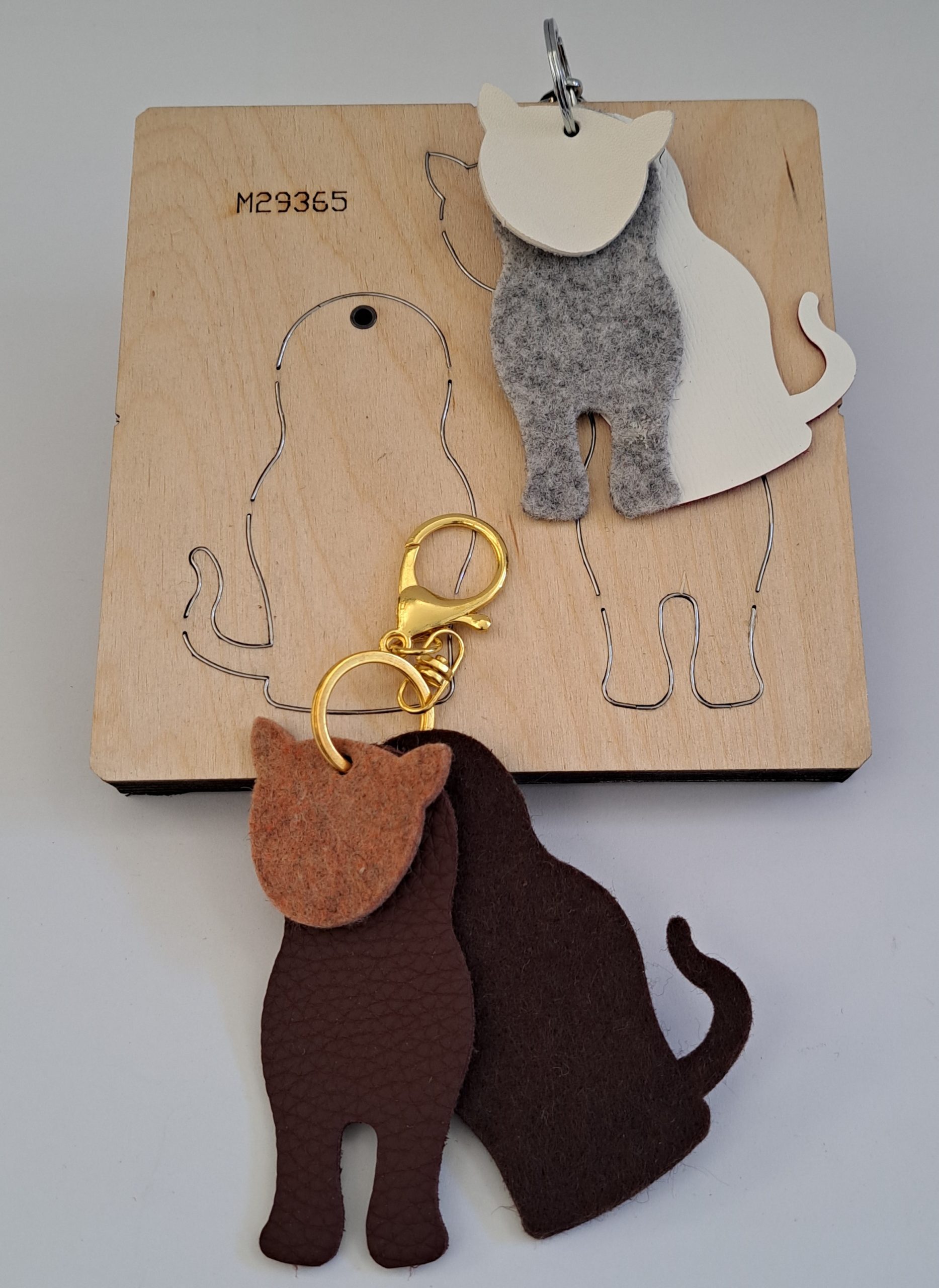 Fustella per realizzare un portachiavi di un gatto in tre pezzi, facile da fustellare e da comporre con già i fori, basta mettere un gancio e se volete disegnare il musetto. Il tutto misura 9 cm per una larghezza di 6 cm circa.