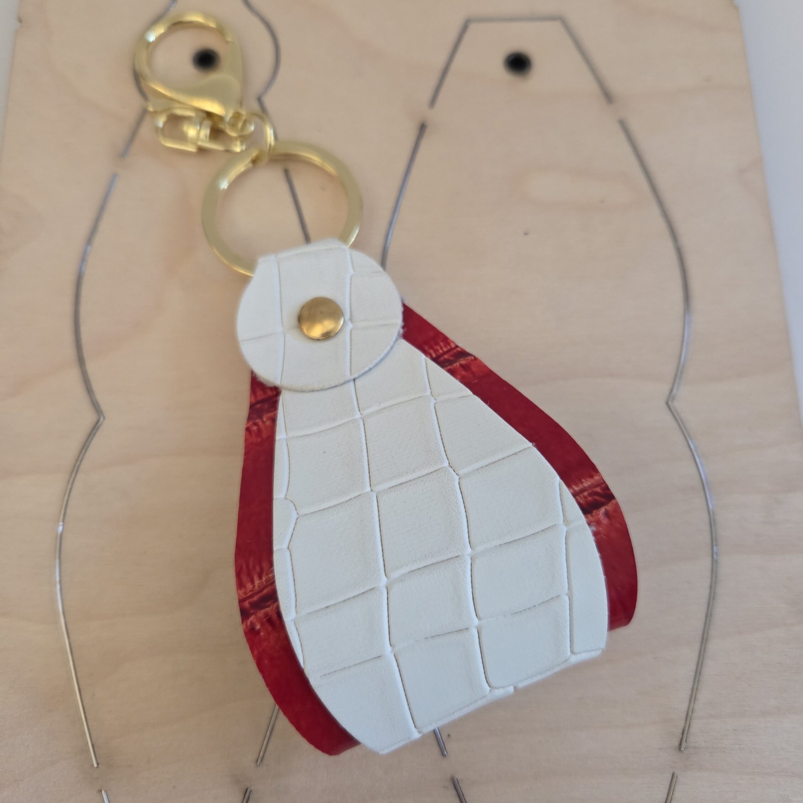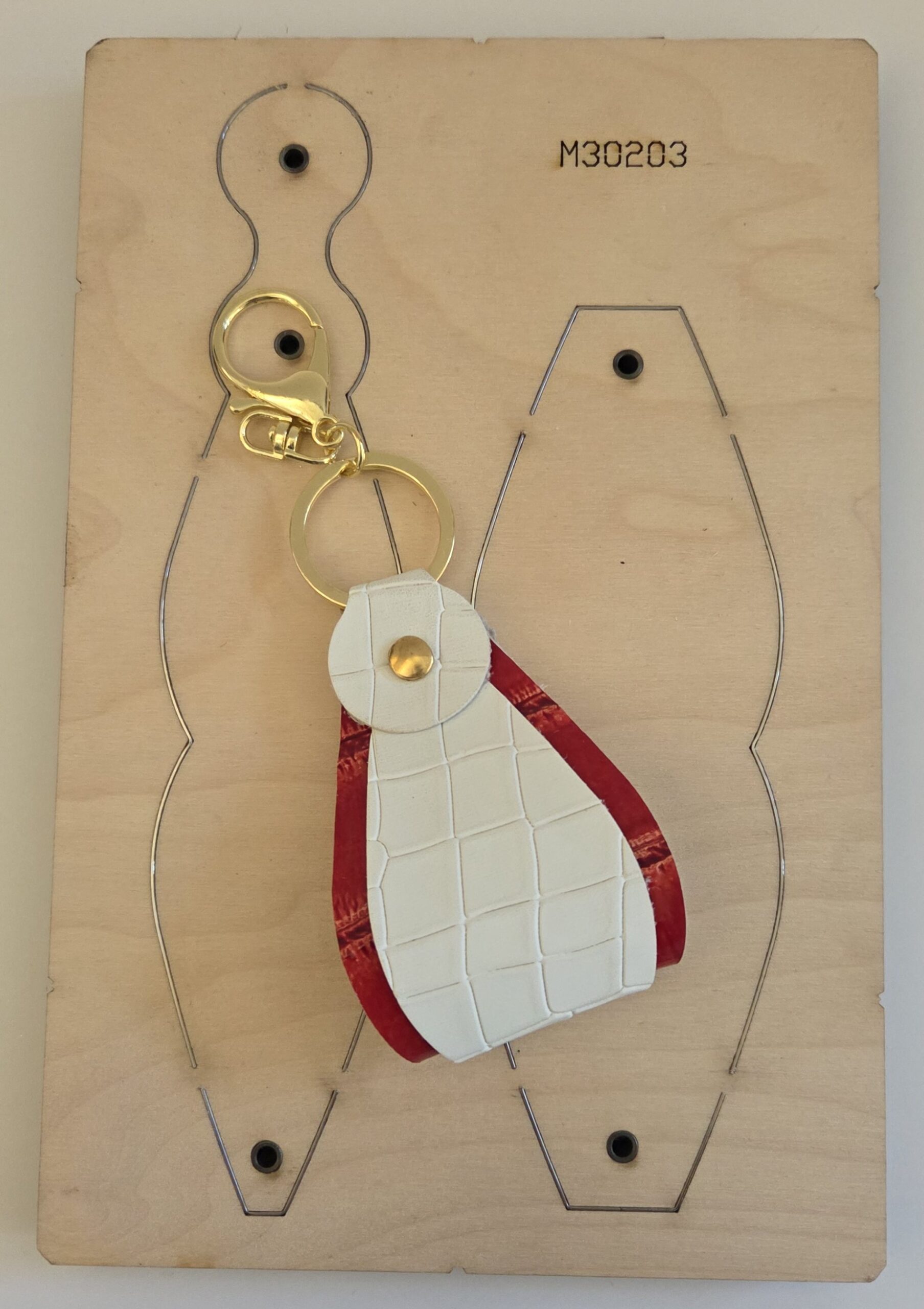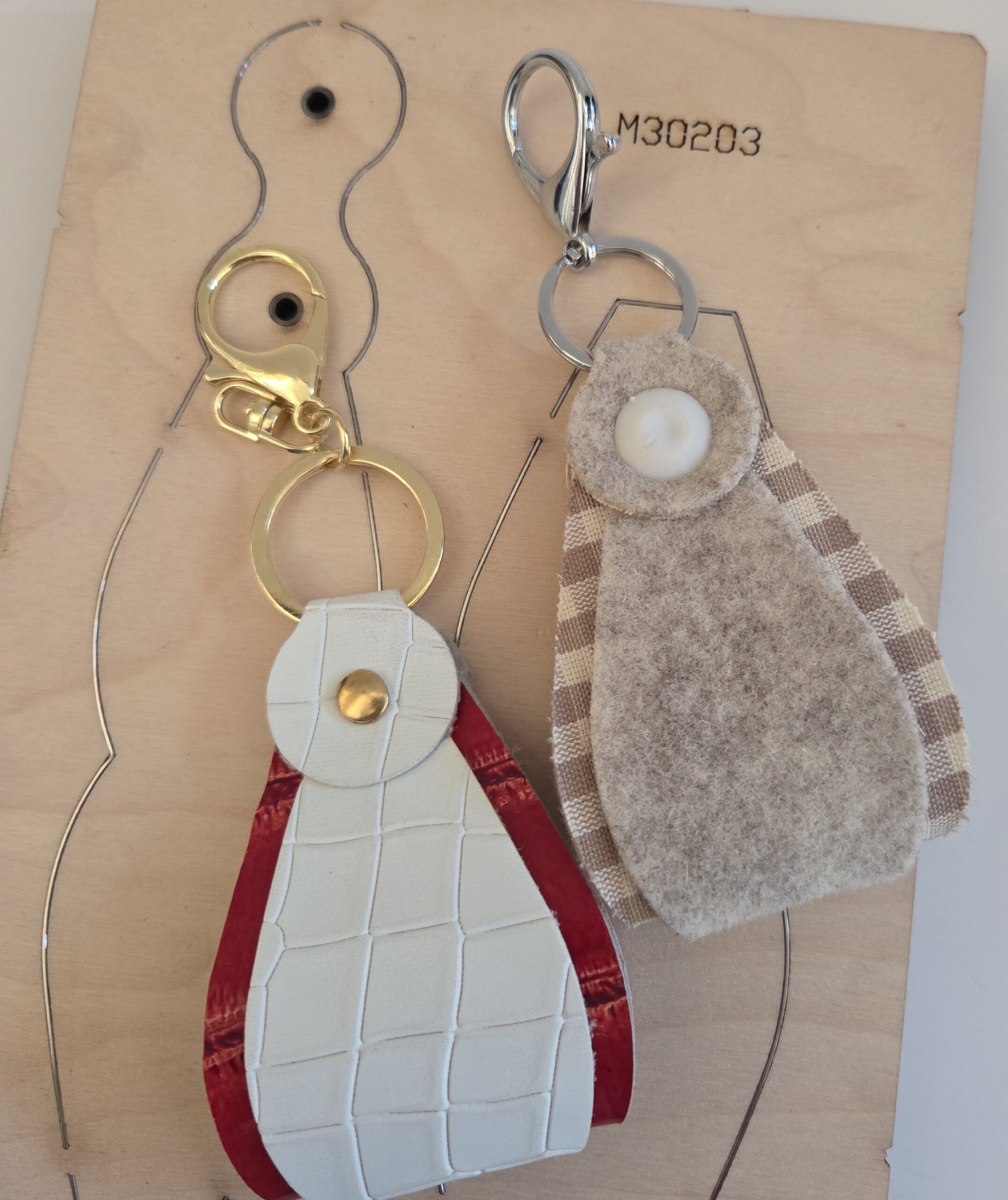 Fustella per realizzare un portachiavi a due colori, con pelle, feltro, gomma eva da chiudere con un bottone automatico o con una borchia.