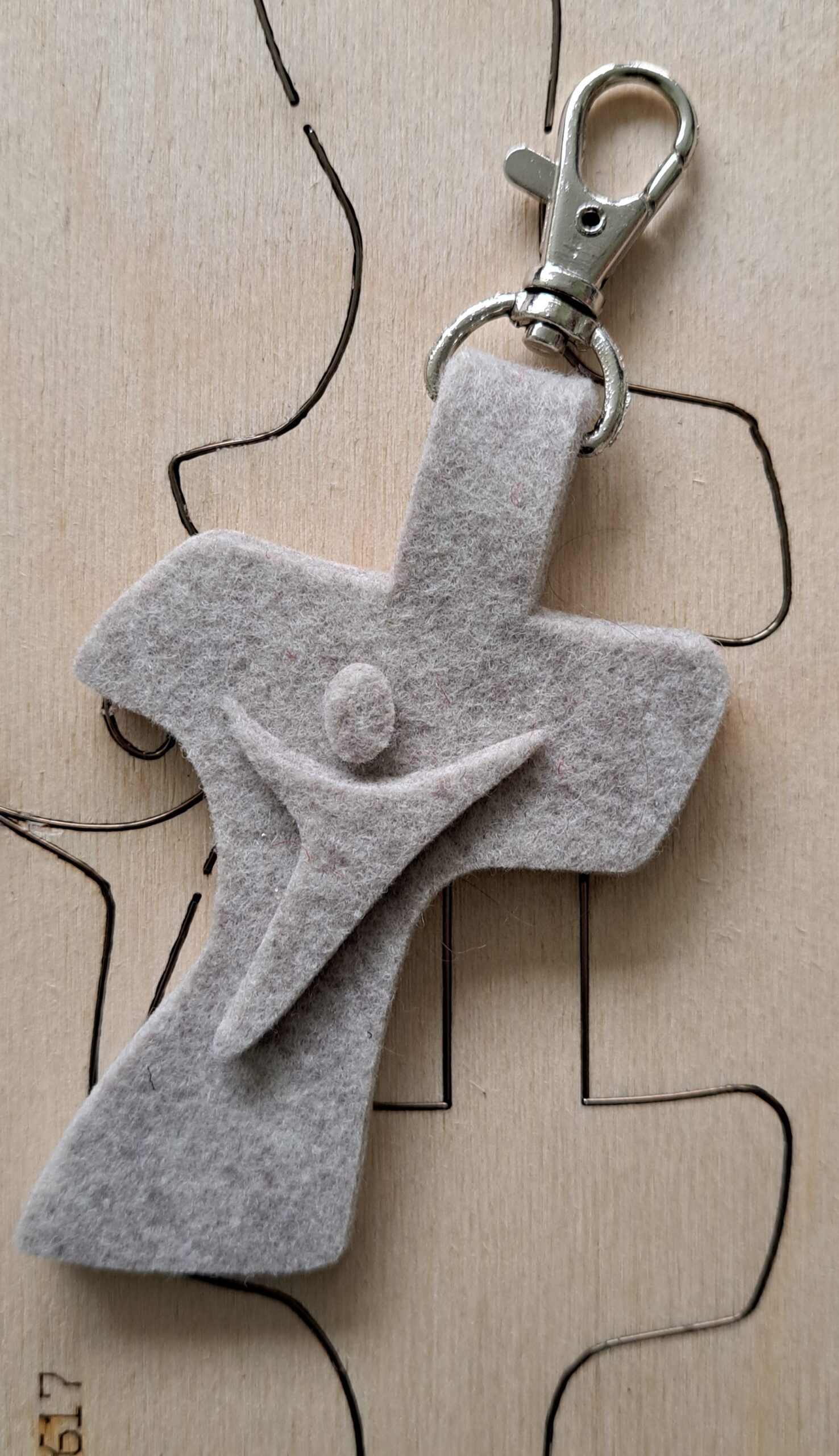 Fustella per realizzare un portachiavi a forma di tau con cristo.