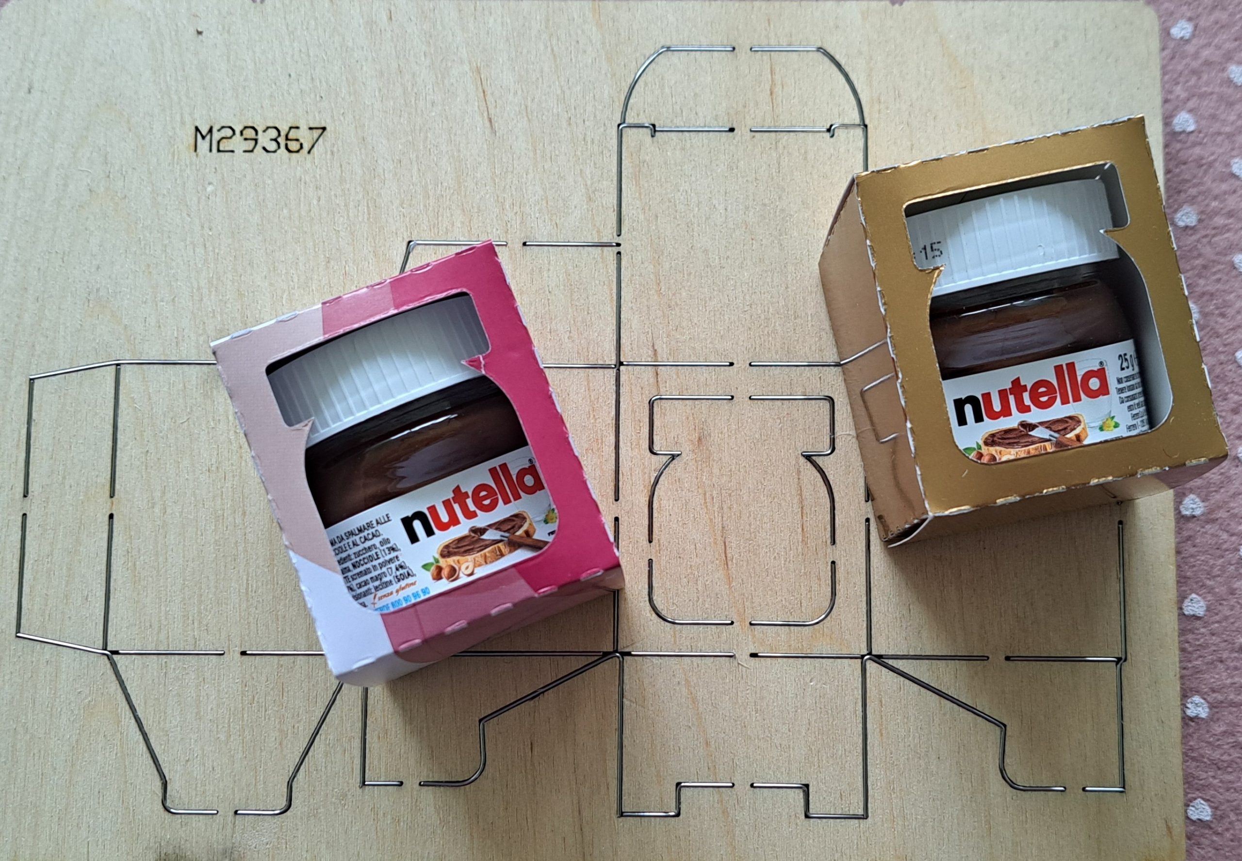 Fustella a scatola per contenere un vasetto di nutella da 25 g per big shot STANDARD. Le misure della scatola sono 4,5×4,5×5 cm da realizzare con tutti i tipi di carta e con apertura frontale a forma di vasetto che può essere utilizzata come bigliettino.
